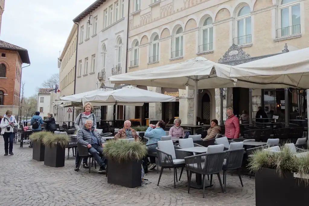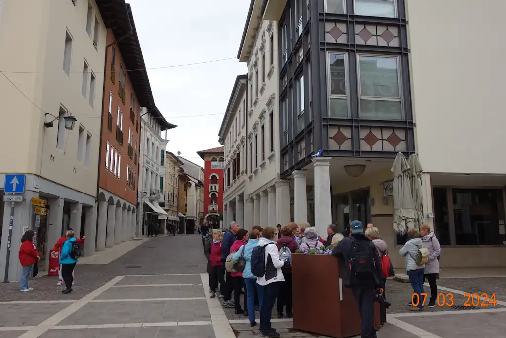 Najprej smo si vzeli čas za voden sprehod skozi staro mestno jedro Pordenona, ki je lepo urejeno in že okrašeno s cvetočimi zasaditvami.