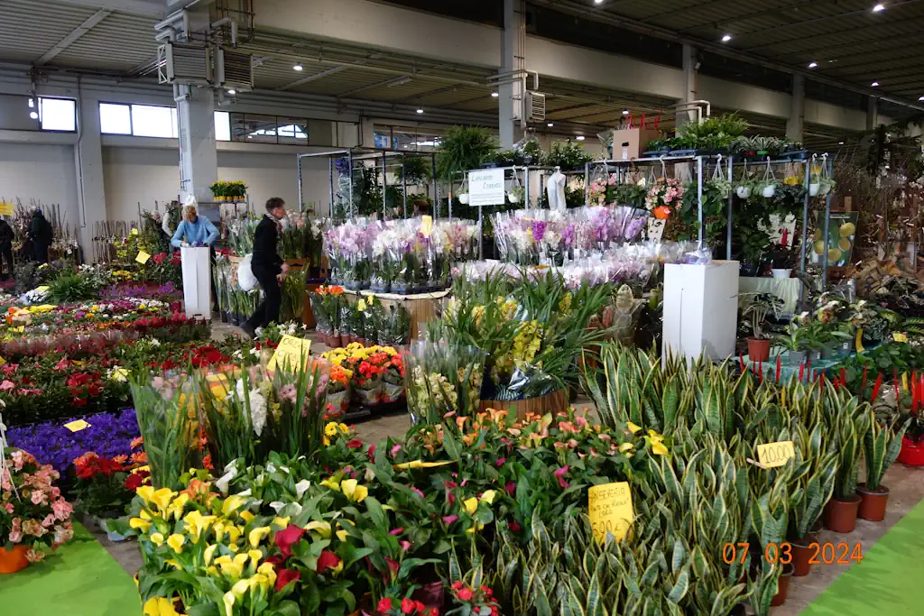 Nato smo se podali proti sejmišču, kjer so nam dali tri ure časa za ogled. Razstava cvetja, sadik, lončnic, semen, orodja, zasaditve parkov itd se dogaja v osmih paviljonih, vmes pa je en paviljon namenjen prehrani. Tako kot se pri cvetju nismo mogli načuditi pestrosti ponudbe, je tudi paviljon hrane nudil čudovite poglede na stojnice različnih italijanskih pokrajin z njihovimi specialitetami. Povsod so imeli tudi degustacije in so kar vabili k pokušini. Veliko dobrega smo pokusili, kaj tudi kupili, pa tudi kakšna »flanca« je šla z nami.