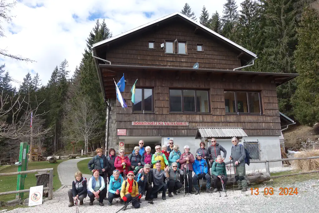 Na pohodu nas je bilo 23 in iz Završnice smo se proti Valvazorjevem domu podali po rudni poti skozi gozd. Na čase se ta pot kar pokonci postavi, a smo vseeno hitro prisopihali do cilja. Na počivalu je bila temperatura 10 stopinj C in prijetno nas je grelo. Tudi pri domu smo raje posedli zunaj na soncu.