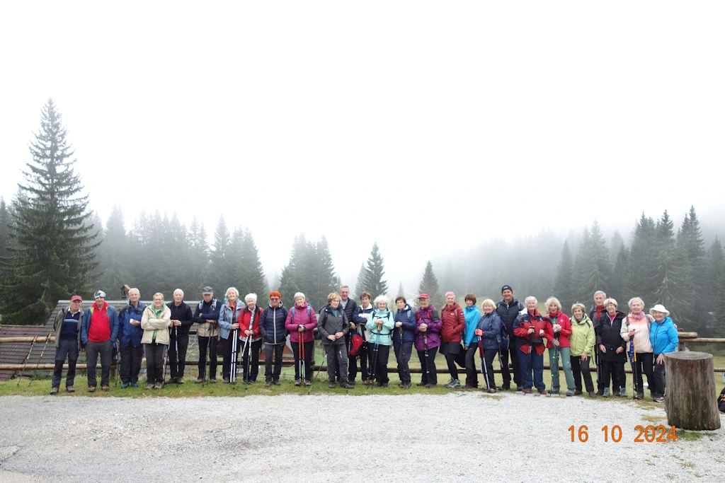 Kar nekaj sred so nas vremenske razmere prikrajšale za hojo in druženje. Tokrat pa smo kljub zelo turobnemu vremenu vzeli pot pod noge in na pokljuškem Mrzlem studencu startali na okoli 16 km dolgo krožno učno pot.