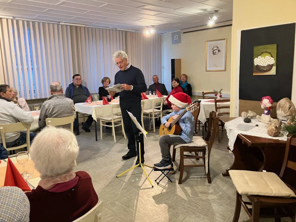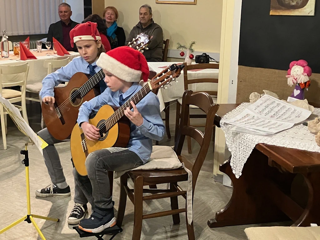 Pevovodja Franci je času in poslušalcem primerno izbral in prebral nekaj poezije, potam pa sta v roke vzela kitari dva učenca jeseniške glasbene šole. Najprej sta vsak posebej zaigrala nekaj prijetnih skladb, nato pa sta še v duetu čisto navdušila poslušalce in bila deležna velikega aplavza.